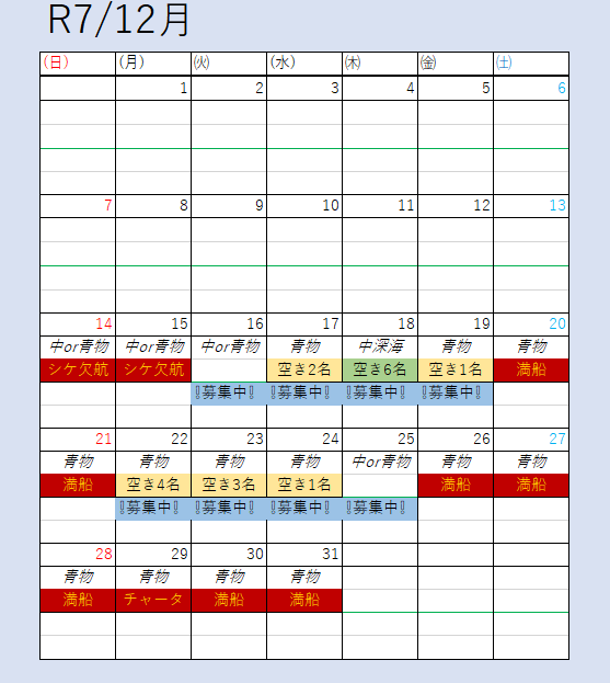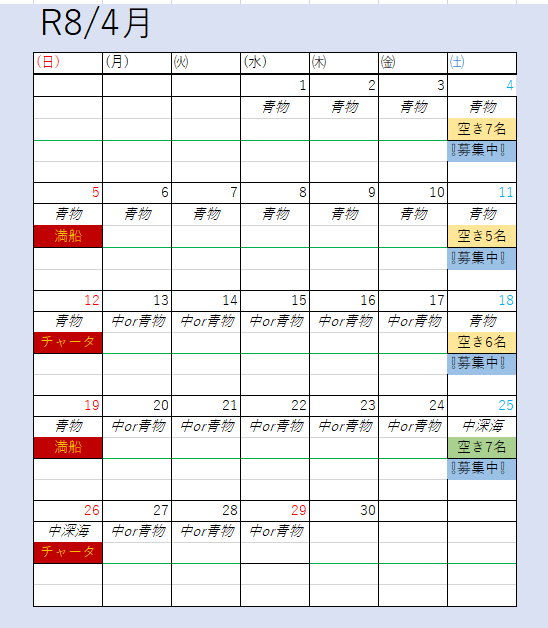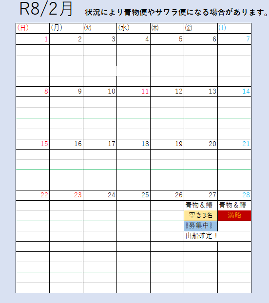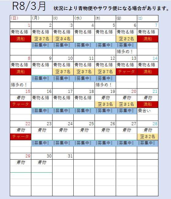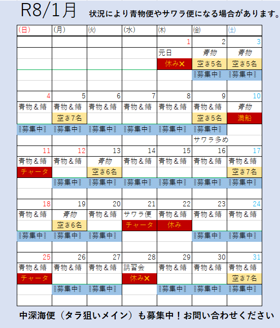 - ※出船確認は必ず前日19時~21時でお願いします!