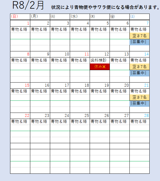 - R8/5月までの予約状況を更新しました。