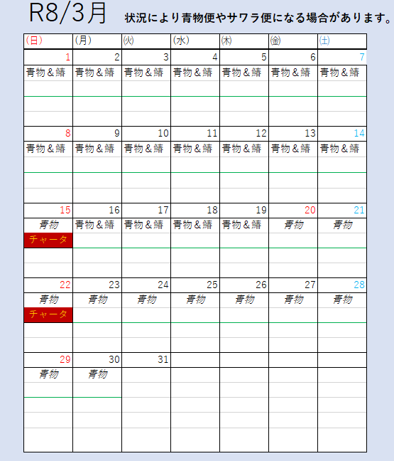- ※GW、年末年始などの大型連休は祝日扱いとさせていただきます。
